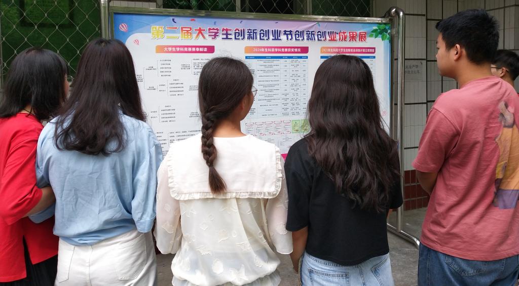 创新创业成果展主要通过对大学生学科竞赛赛事解读、展示近年来学科竞赛的获奖情况和创新创业项目立项情况,让我院学子更加清楚的了解赛事,增强竞赛积极性和自信心。