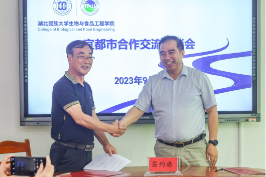 与会人员观看了宜都市宣传片、生物与食品工程学院宣传片。向政对我校基本情况做详细介绍,简述我校的创办历史,指出学校已经建设为一所涵盖经济学,法学、教育学等十大学科门类的综合性本科学校。他代表全校师生向宜都市人社局表示感谢,为我校毕业生实现高质量就业提供可能和保障。周志就我院专业基本情况作出详细介绍,他指出,学院毕业生与丰岛集团业务吻合,希望丰岛集团能吸纳更多的毕业生就业。