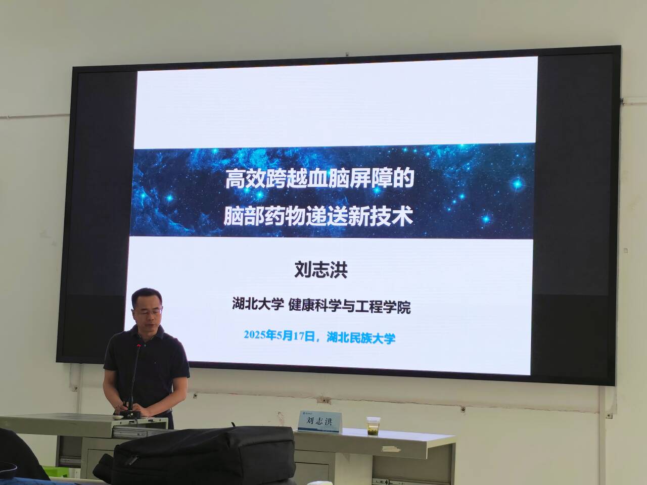(本网讯 王智勇、孙甜/文,贺金萍、孙甜/图)2025年5月17日,国家杰出青年科学基金获得者、科技部“创新人才推进计划”及“万人计划”科技领军人才、湖北大学副校长刘志洪教授应邀莅临我校作题为《高效跨越血脑屏障的脑部药物递送新技术》的学术讲座。本次讲座由365电子娱乐官方网站副校长刘伦志教授主持,我校教师代表及生物与食品工程学院、化学与环境工程学院硕士研究生聆听讲座。