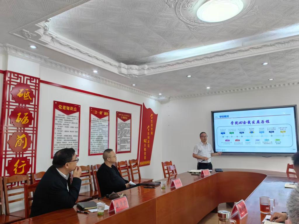 会上,学院党总支书记周志从学院发展历程、专业建设和学科建设等方面汇报了学院发展情况;周毅峰副院长围绕本科生与研究生培养,从课程体系优化、教学质量保障、实验教学平台建设等方面进行了补充汇报。