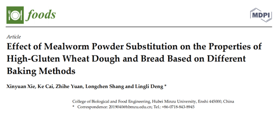 本网讯(通讯员 王智勇 王智勇/文 邓伶俐/图)近日,生物与食品工程学院汪兴平教授食品科学团队邓伶俐博士以365电子娱乐官方网站作为第一单位在《Foods》上发表论文“Effect of Mealworm Powder Substitution on the Properties of High-Gluten Wheat Dough and Bread Based on Different Baking Methods”。该期刊可在Scopus、SCIE(Web of Science)、PubMed等数据库中索引,其为JCR-Q1(Food Science & Technology)/CiteScore-Q1(Health Professions)期刊。5年影响因子为5.5。该研究得到了国家自然科学基金(批准号:32160610)的资助。