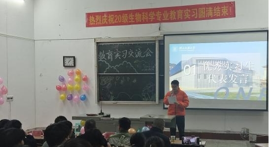 本网讯 师范教育实习是师范教育专业实践教学的重要环节,是师范专业将理论与实践紧密结合的重要手段之一。我院于2023年12月29日下午七点在4202教室开展2020级生物科学专业师范教育实习交流会。本次交流会由生物科学专业负责人武芸主持,学院副院长周毅峰,副院长罗凯、教学科科长卢婵、学生科科长陈杰、高级实验师周光来、生物科学专业的所有老师和生物科学专业各年级全体学生出席会议。