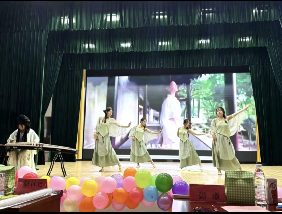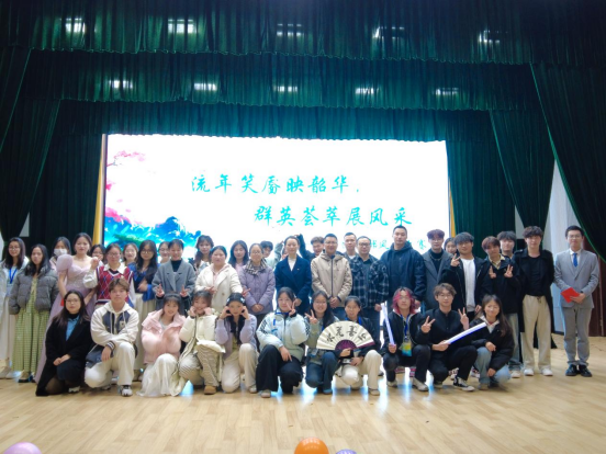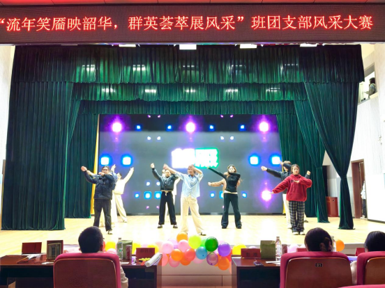 活动在DM舞社带来的开场舞《Attention》中正式拉开帷幕。动感的节奏、活力四射的舞姿瞬间点燃了全场热情,欢呼声和掌声此起彼伏。随后,来自各团支部的10组节目依次登台亮相,为现场观众带来了一场精彩纷呈的视听盛宴。0724402支部、0724405支部、0724407支部带来的舞蹈《鸳鸯戏》,将古典韵律与东方美学完美融合。舞者们身着华丽的古装,身姿轻盈,舞步灵动,配合着悠扬的音乐,仿佛将观众带入一个如梦如幻的古代世界,举手投足间尽显传统文化的独特魅力。生通社、心协、公管联合呈现的《元气大爆发》舞蹈串烧则充满了现代潮流元素,活力满满的舞蹈动作、时尚的音乐和青春洋溢的表演风格,展现新时代青年的朝气蓬勃与积极向上。0424401支部带来的原创话剧《脱下长衫》聚焦青年就业话题,以幽默诙谐又发人深省的方式,引发现场观众的强烈共鸣,让大家在欢笑与思考中对当下的就业形势和职业选择有了更深刻的认识。0723407支部、0723408支部带来的歌舞《时间都去哪了》则以温情叙事打动人心,通过细腻的表演和深情的歌声,唤起大家对时光流逝的感慨和珍惜当下的意识。0424408支部的《相亲相爱》歌舞表演将活动推向高潮,温馨的氛围、欢快的旋律和全体演员的热情演绎,让现场充满浓浓的爱意与温暖。此外,化环办公室教师带来的《超级英雄》歌曲联唱与《Mr.Chu》舞蹈表演,展现师生同台的别样风采。老师们用他们的才艺和热情,为同学们树立了榜样,也拉近师生之间的距离,现场气氛热烈而融洽。