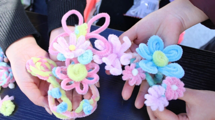 在“扭出春意”环节中,学生们利用五彩缤纷的扭扭棒精心制作出能够象征春天之美的各种元素。向山区的孩子们传递了最温馨的祝福。