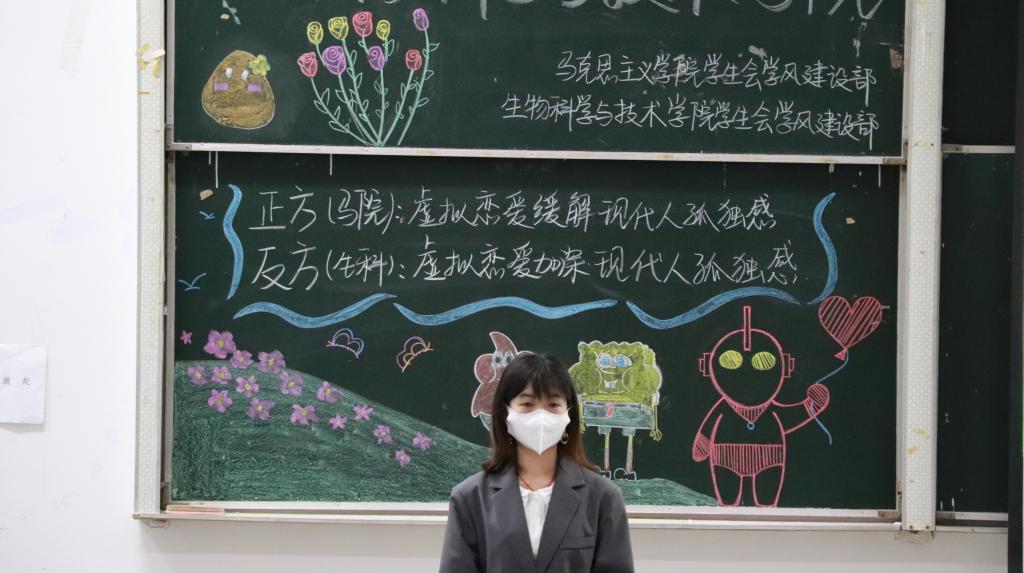 本次比赛围绕辩题“虚拟恋爱对现代人孤独感的影响”展开辩论,马克思主义学院为正方持“虚拟恋爱缓解现代人的孤独感”的观点,我院为反方持“虚拟恋爱加深现代人的孤独感”的观点。在正反两方进行简洁明了的自我介绍后,比赛进入开篇立论环节,正方一辩以“虚拟恋爱具有多元化特质”和“虚拟恋爱可以跳出现实”为切入点立论,反方则以“虚拟恋爱影响现实社交”和“虚拟恋爱推动群体性孤独”来立论。在随后进入攻辩环节中,双方更是不甘示弱,步步紧逼。在自由辩环节中,双方强强相对,据理力争,对答如流,气氛十分活跃。观众提问环节结束后,比赛进入总结陈词环节,双方辩手在紧抓对方漏洞的同时不忘陈述己方观点。在等待比赛结果期间,廖圆圆主持进行“猜字谜”小游戏与观众互动,使得现场气氛活跃不已。最后,张旗航对本次比赛进行点评,她在肯定辩手精彩表现的同时,也指出辩手语速过快,时长把握不准,忽视比赛规则等问题。据悉,正方一辩曾静洁与反方四辩于超荣获“优秀辩手”称号。