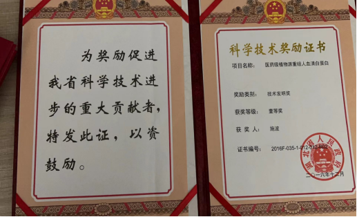 2021-2023年,主持完成植物源重组人血清白蛋白核心技术攻关工程建设项目,担任项目总负责人,已竣工投产,