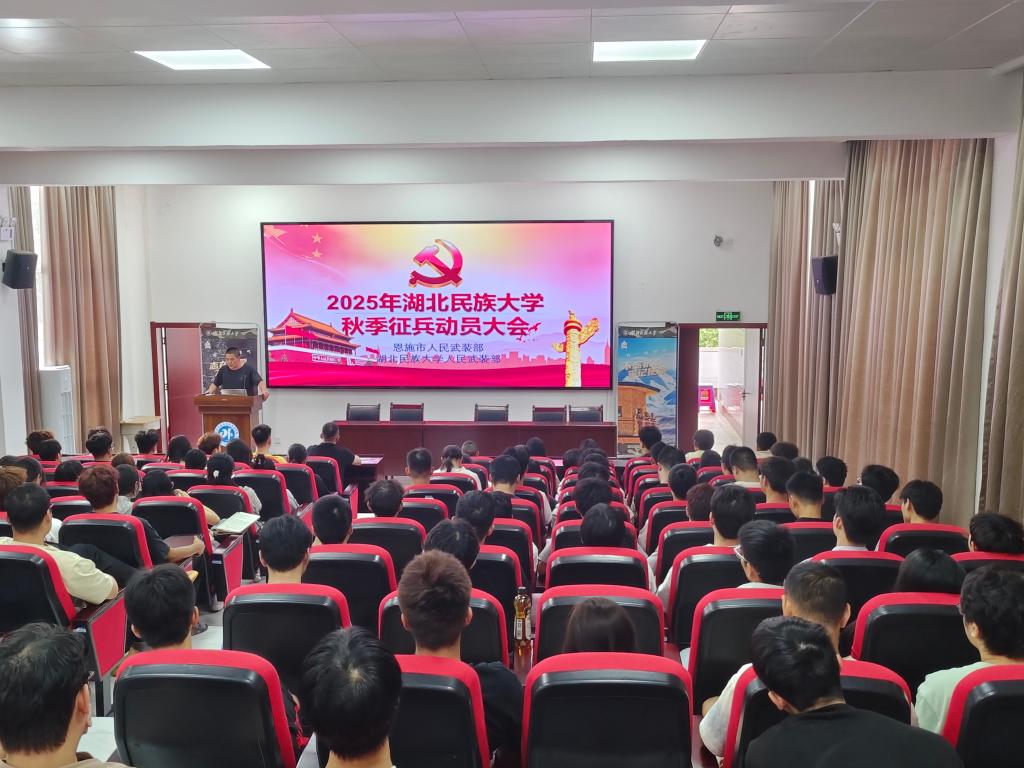 为积极响应国家征兵号召,鼓励优秀大学生投身军营,2025年6月5日下午,365电子娱乐官方网站人民武装部联合恩施市人武部在文汇楼6402报告厅召开2025年秋季征兵宣传动员大会,恩施市征兵办公室主任宋勇、恩施市征兵办公室体检中心医生王晓玲、365电子娱乐官方网站武装办公室负责人,各学院负责征兵的老师、意愿入伍的学生共150余人参加动员大会。动员会上,恩施市征兵办公室主任宋勇向学生宣讲了参军入伍对于国防建设的重大意义,以及对个人成长...