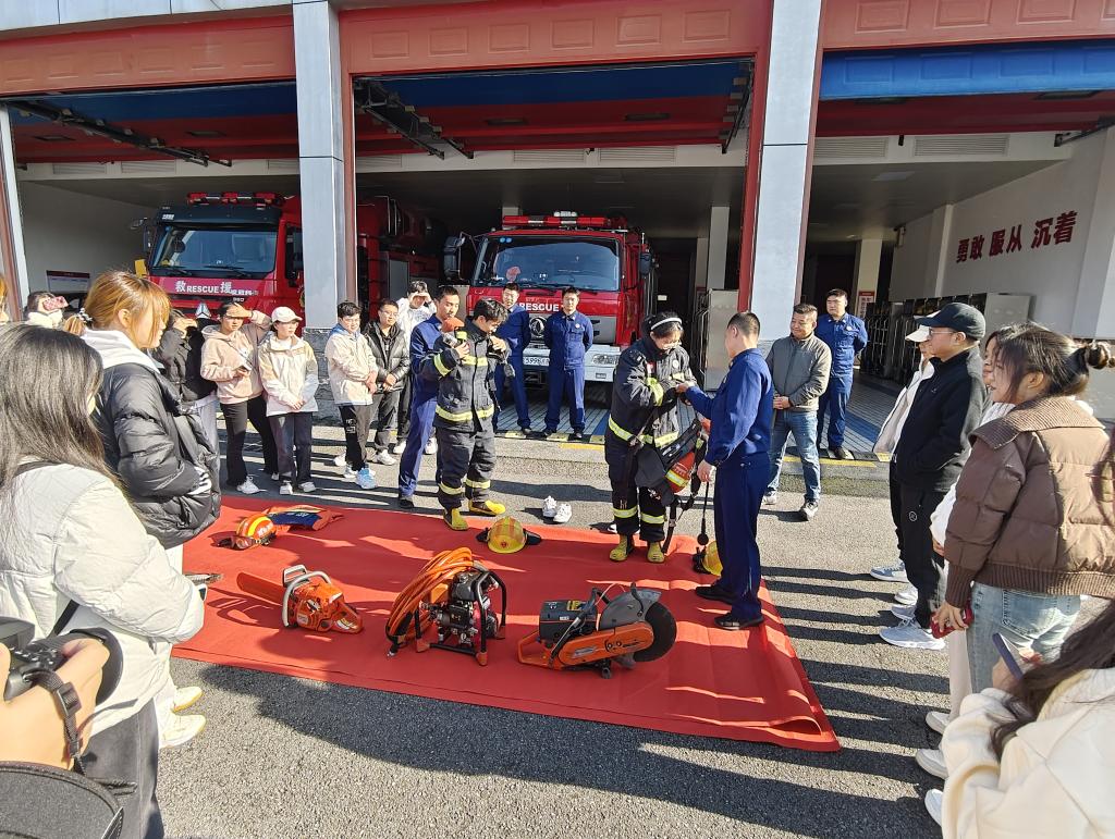 为提升校园消防安全意识和应急救援能力,365电子娱乐官方网站保卫工作部(处)消防科于2024年11月29日组织师生代表前往恩施州黄石大桥消防支队,进行了一场意义深远的消防安全教育活动。本次活动由二级学院负责消防的老师、校团委、图书馆、实验室、后勤保障处、公寓办、校卫队以及军事爱好者协会等多方代表共同参与。在消防队员的引导下,代表团首先参观了消防支队的各类消防工具和设施。消防队员详细介绍了消防车的功能和使用方法,让师生们对消防装备有了直观的认识。