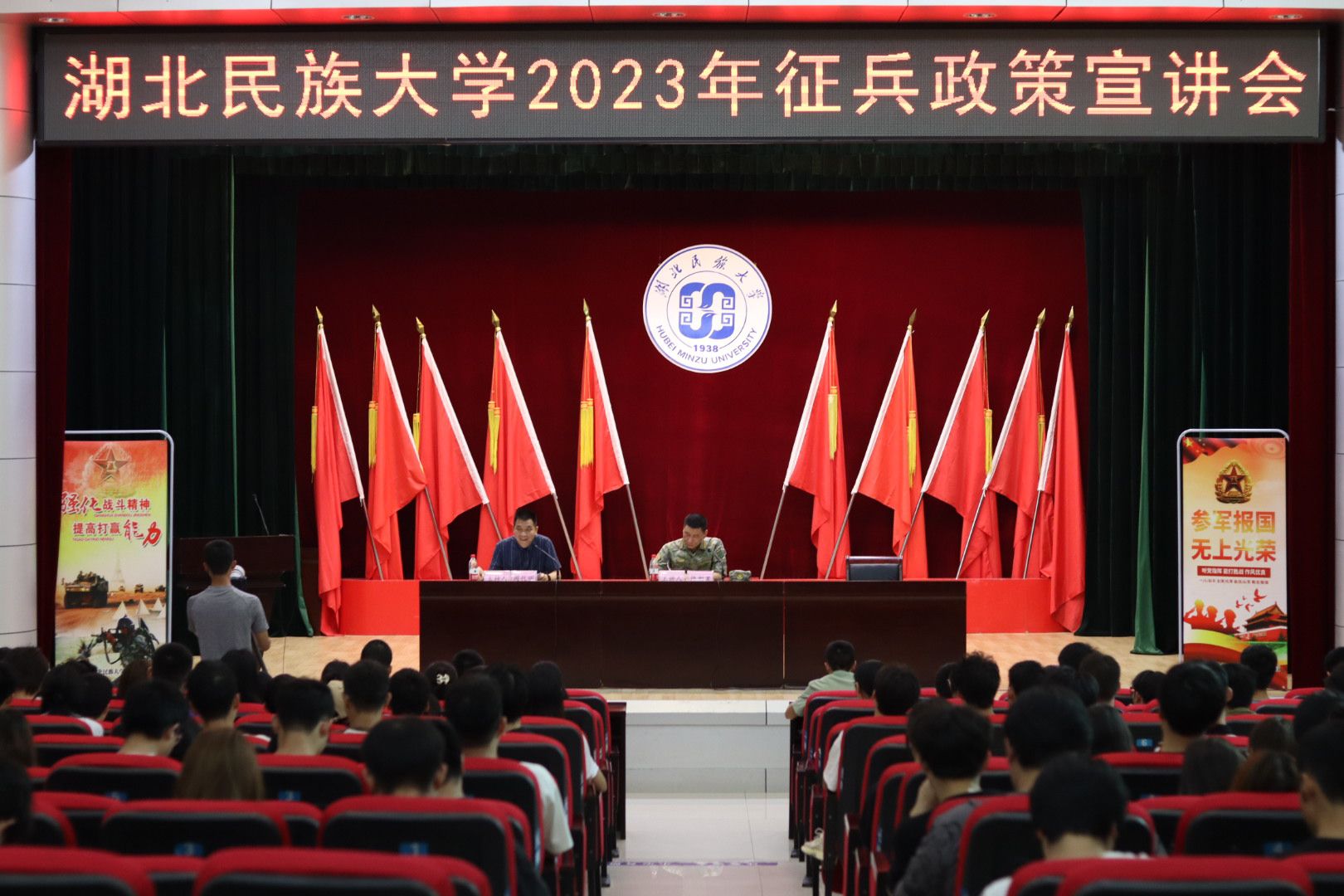 (通讯员 曾飞翔)为做好2023年秋季大学生应征入伍工作,6月14日,我校组织了秋季征兵动员暨政策宣讲会,恩施军分区国防动员处处长陈刚果上校到会指导,近300名学生参加活动。
