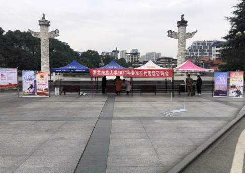 在我校大学生广场开展征兵咨询会