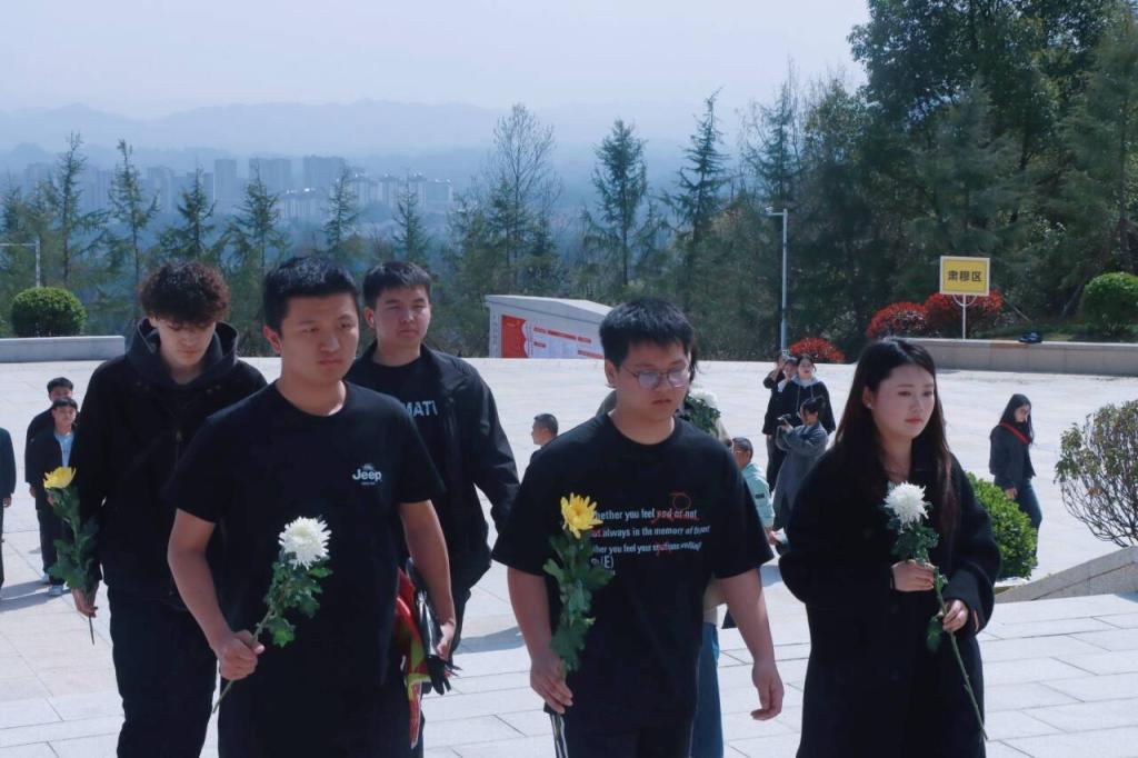 在纪念碑前,护校队员们向烈士纪念碑献上花圈,瞻仰“革命英雄永垂不朽”纪念碑,共同低头默哀3分钟,以示对英雄的崇高敬意。指导老师舒吉高老师从爱国、爱党、做一名优秀的护校队员入手教育大家牢记使命、勇于实践,增强责任感和使命感,努力学习专业知识,努力成长为有理想、有道德、有担当的大学生。