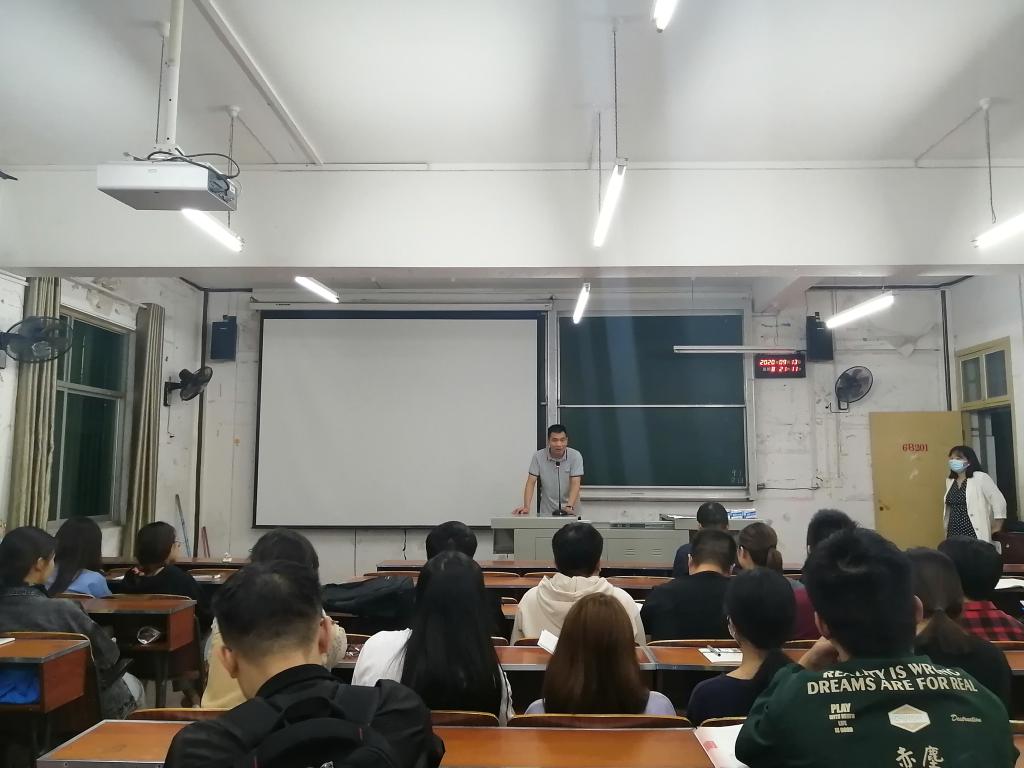 活动伊始,由粟登平老师讲解外国语学院学生管理规定及“六防”安全知识,希望同学们认真学习并遵守纪律,提高安全意识。与此同时,陈斌副院长对同学们提出了三点要求,一是希望同学们尊敬师长,团结同学,完成辅导员或者老师交予的任务,积极向优秀的同学学习;二是希望同学们培养良好的学习习惯,设立学习目标;三是希望同学们热爱生活,规律作息,加强身体锻炼,同时还要保持良好的心态。紧接着是骆贤凤院长讲话,他首先与同学们分享外国语学院的历史;随后他指出,努力与成就成正比,对同学们提出“四个一”的要求,即每天阅读一篇文章,每天背一篇文章,每天听一篇文章,每天写一篇作文。此外,他还提到,大三是重要的分水岭,每个同学都应该明确努力的方向以及学习的兴趣,提高自身综合能力。鼓励同学们积极参加活动,以主人翁的姿态加入外国语学院这个大家庭,多与老师、同学进行交流。最后,由周代明书记进行总结。他希望同学们珍惜当下,放眼未来,抓住机会,全面提升自身能力素养,充分展示自身才能;同时端正学习态度,真正拥有真才实学。
