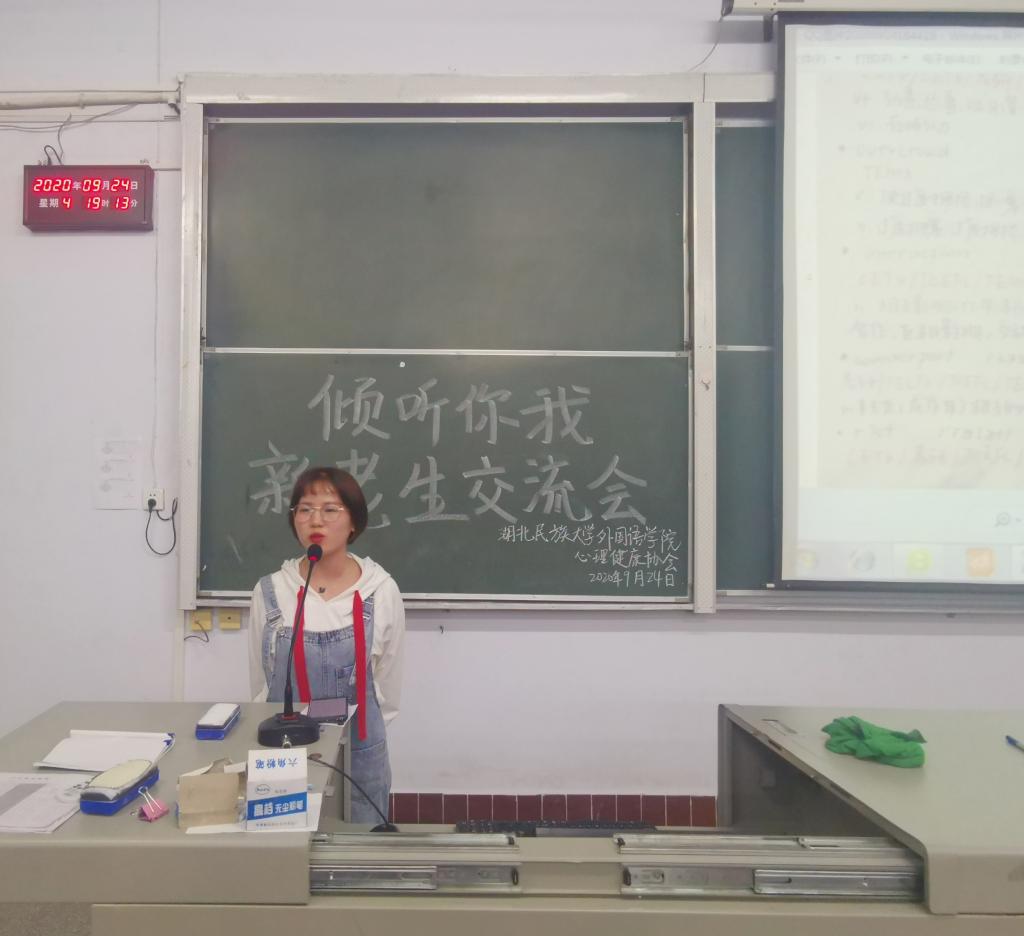 (通讯员 龚倩 廖静薇 夏澳丽 张迈迈 摄影 杜丹彤)为帮助新生更好地适应大学生活,9月24日,365电子娱乐官方网站外国语学院心理健康协会于6B201、6B304、6402及6401教室成功开展“倾听你我”新老生交流会,外国语学院全体新生到场聆听和交流。