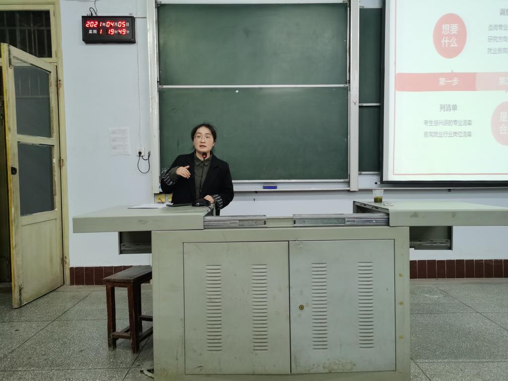 时间:2021-04-06 编辑:学生科 点击:本网讯(通讯员廖静薇 摄影王芷依 詹佳莉)为指导我院学生学业规划,明确考研方向,特邀湖北中公教育考研英语研究院院长陈媛媛老师于外国语学院6401教室举办主题为“考研复习,择校方向指导”的考研指导讲座,该活动由外国语学院学生会学风建设部主办。