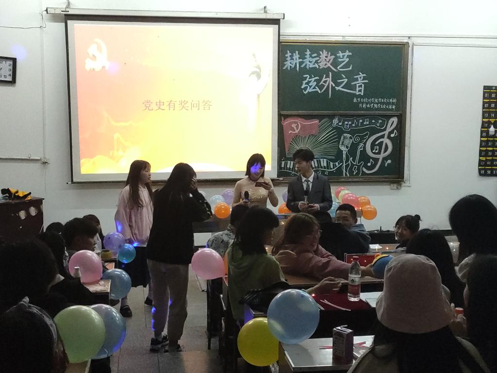 活动伊始,主持人介绍比赛规则和评委人员。本次比赛分为两轮,一轮为两两pk赛,第二轮为自选歌曲演唱。在第一轮中,王森威演唱的《大鱼》以95分的高分成为本场第一名。第一轮结束后,进入党史问题有奖竞答环节。在第二轮比赛中,张姝洁凭借悠然婉转的歌声赢得本场第一名。第二轮结束后进入听歌识曲游戏环节。最后,一号选手张姝洁和六号鸽笼组合以相同的94.75分赢得比赛的第一名。