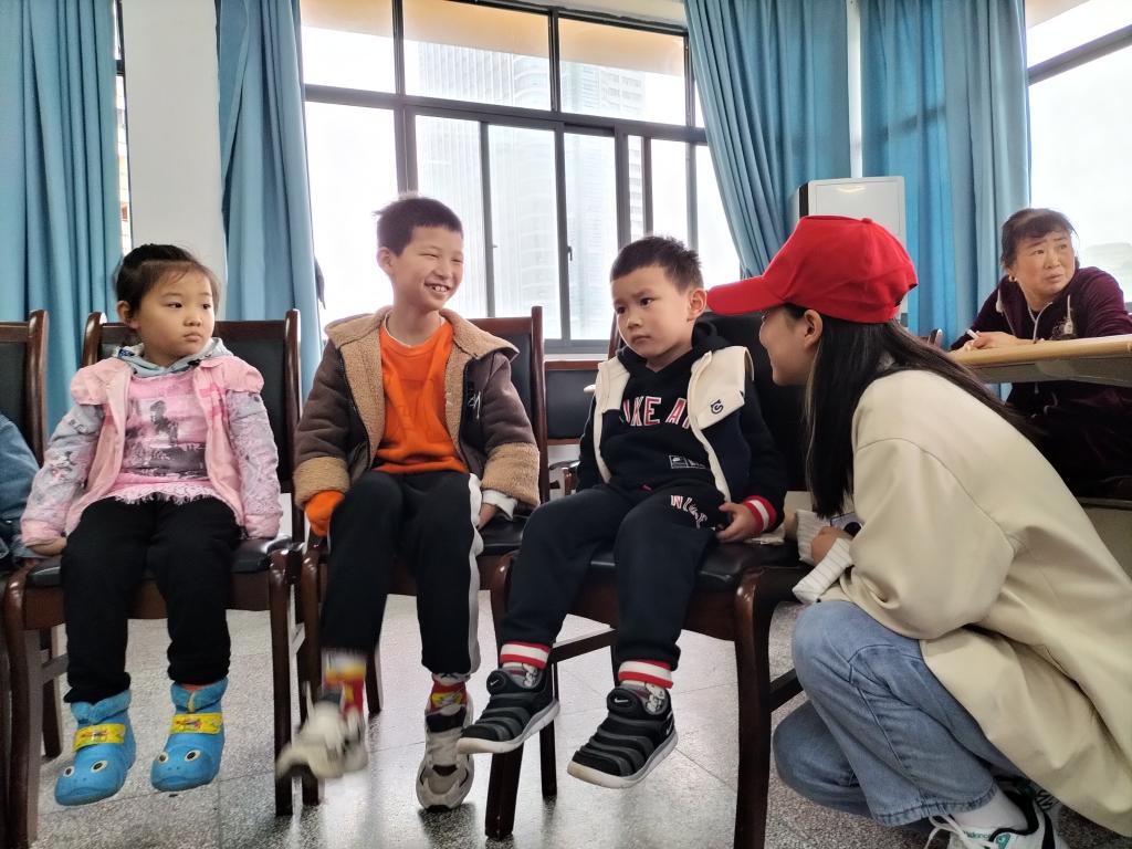 活动伊始,志愿者集中于行政楼,负责人强调相关事宜,分发志愿者帽。在到达活动目的地后,志愿者布置活动场地,教参加活动的小朋友唱《没有共产党就没有新中国》,活动中不少家长陪同小朋友一起参加,也体现了当今社会家长对孩子成长过程的重视,注重家长在孩子学习和生活中的参与度。学唱期间,还有小朋友领唱《共产主义接班人》。紧接着,志愿者和小朋友们一起玩游戏,其中在游戏“汤姆的命令”中,志愿者要教小朋友们学习单词,志愿者蹲下来耐心的教会小朋友发音,这看似只是一个简单的益智游戏,但是却激发了孩子们的学习热情。活动临近尾声的时候,小朋友们一起合唱《听我说谢谢你》向父母表达爱意,也向志愿者表达了感谢。最后活动结束时在小朋友们的不舍中我们看到青春承载着梦想也承担着责任,知识有着独特的魅力也有着无穷的力量。