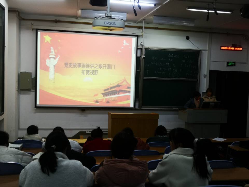 时间:2021-11-29 编辑:学生科 点击:本网讯(通讯员:胡进怡 摄影:张艺佳)为进一步加强党史学习教育,11月28日,我院各支部召开特色翻转晚点名党史故事连连讲之“敞开国门,拓宽视野”。