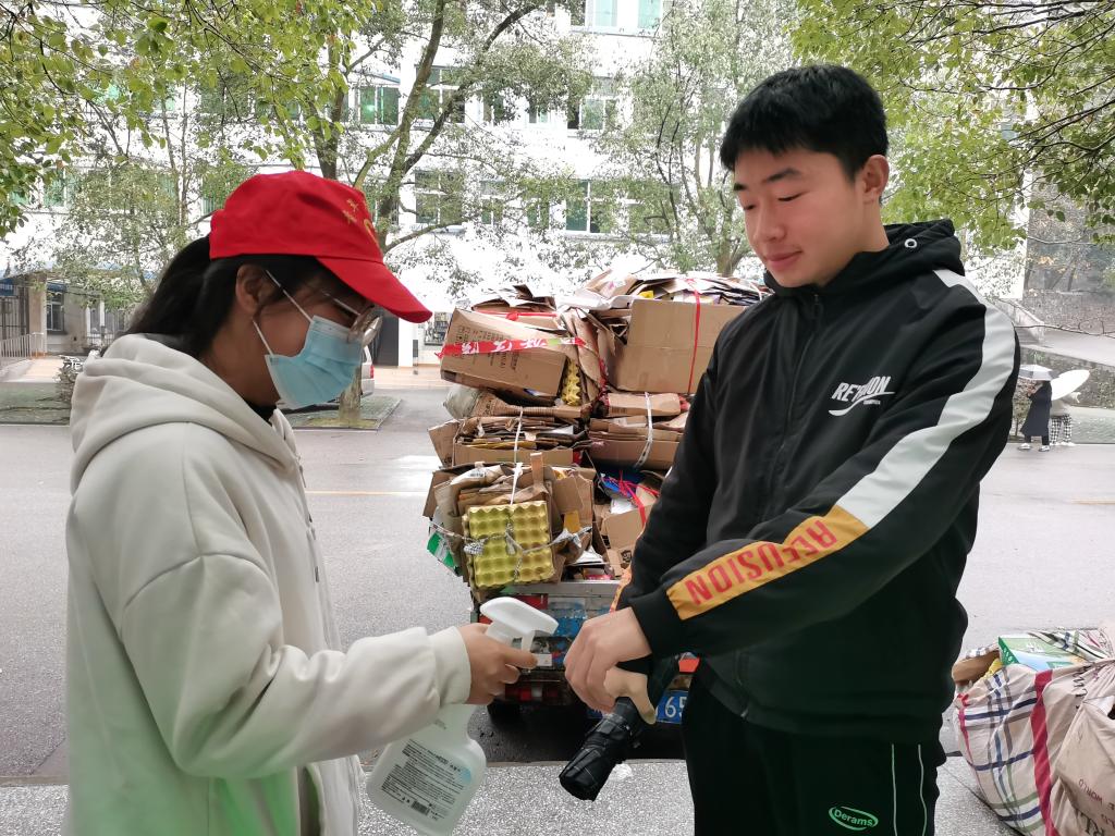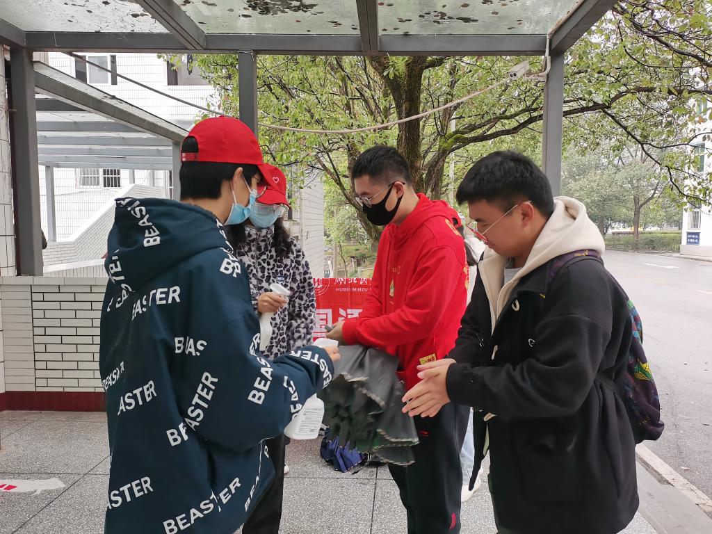 在外国语学院同学们的不懈努力下此次志愿服务活动取得圆满成功,旨在提高同学们的防疫意识,养成进门消毒的好习惯。作为当代大学生,我们应该“肩扛千斤谓之责,背负万石谓之任”,弘扬志愿服务奉献精神,事必躬亲。