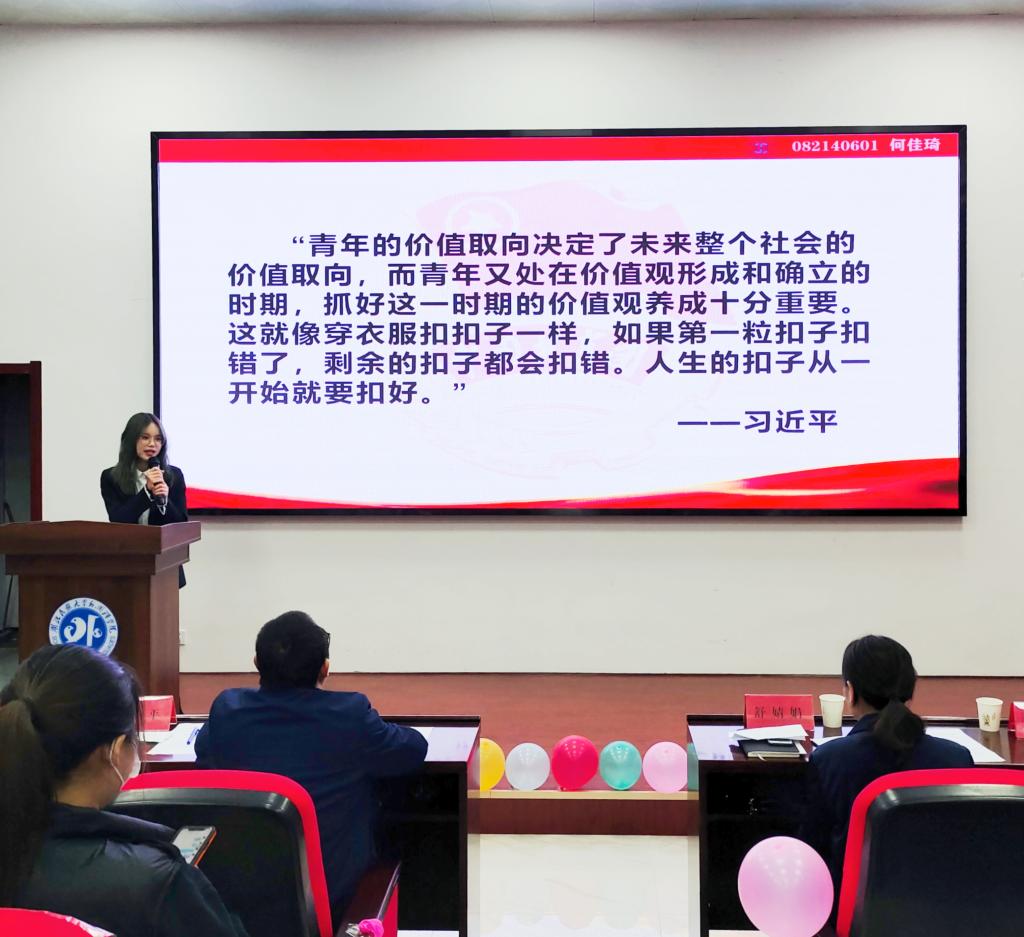 在主题演讲环节中,主讲人徐飞旭将自己家乡的变化娓娓到来,百年党史,无论是顺境、逆境,中国共产党坚持初心使命,团结带领人民历经千难万险,创造一个又一个奇迹;身为土家族的唐馨雨表示:“各民族团结一体,筑牢中华民族共同体共同体意识,这是我们国家不断前行的重要力量”;其次主讲人李晶以一名共青团员的梦为题,将自己的梦与中国梦结合起来,立志争做楷模,为祖国做贡献,同时她呼吁广大青年积极投身于祖国的建设之中;主讲人方彤分别以京剧中四个角色来代表社会上不同的四类人物,强烈谴责国难当头贪污腐败的人,歌颂以一己之力扛起大任的国士,赞扬在疫情期间筑起繁华的众人。最后在学“习一点通环节中,主讲人们紧紧围绕主题,展示自己的特长。