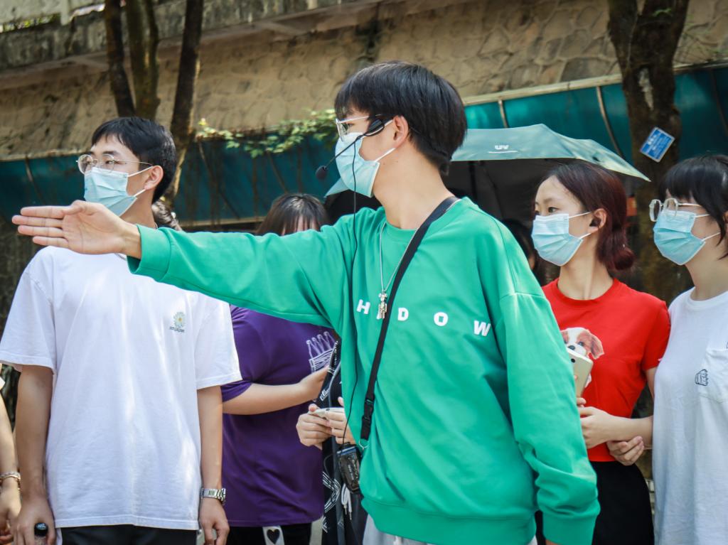 本次游园会活动分为上午10:20 和10:40两个时间段,共有四条路线。活动伊始,班级助理带领相应班级从外国语学院出发,从不同路线进行参观游园。期间,班级助理从学校环境到学校各部门以及校园特色等方面进行详细介绍。在游园途中,新生一路上欢声笑语,无不透露着内心对未来校园生活的渴望与憧憬。同时,在面对新生种种疑问时,他们总是耐心地为新生解答疑惑。