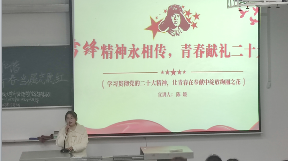 续写“雷锋日记”,服务在民大。3月5日晚,学院各团支部开展以“创文创卫建和谐 青春当属志愿红”学雷锋主题团日活动,集中收看视频《雷锋精神》,集体学习习近平总书记对深入开展学雷锋活动的重要指示精神。外国语学院志愿者宣讲团15位成员入驻各支部开展续写“雷锋日记”活动,讲述属于自己的青春志愿故事。优秀志愿者覃丹妮说道:“雷锋只走过短短22年人生旅程,但他的思考与追求,都被他用诚挚的心写进了日记。我学着雷锋的模样在志愿服务中奉献出一份青春力量”。同学们纷纷表示,要把学雷锋活动融入日常学习生活中,在服务他人中提升自我、实现价值。