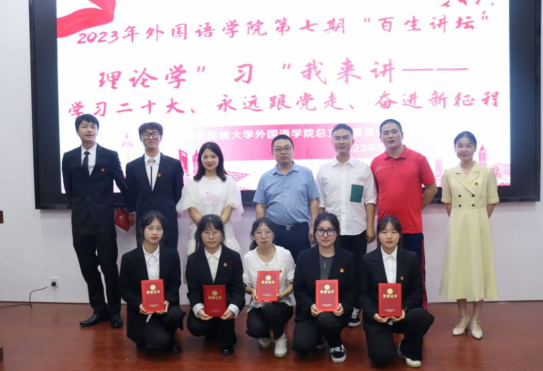 据悉,“百生讲坛”活动以激活团组织活力、提升团学骨干队伍能力素质为重要抓手,为青年大学生搭建理论学习、交流展示和成长进步的舞台,持续推进习近平新时代中国特色社会主义思想进支部、进网络、进团课。近年来,外国语学院青年学子在活动中学思践悟中收获成长、展现风采,涌现出一批可学、可亲、可敬的青年典型。