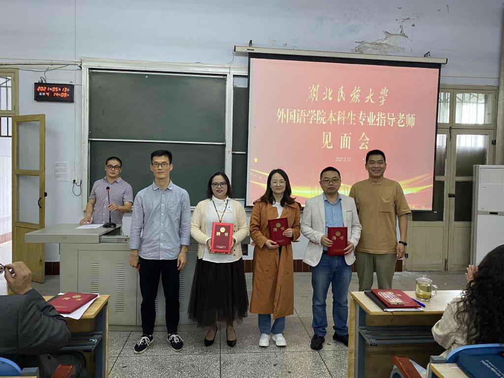会上,由学院党总支书记周代明为24名专业老师颁发了聘书,粟登平解读《外国语学院“班导制”暂行办法》的实施背景、方案内容及相应要求。导师杨年芬作为指导老师代表发言,深入浅出,引经据典,号召导师们用坚定的信念、渊博的学识、广泛的人脉帮助同学们树立专业自信,引导学生在人生的每一阶段志存高远、努力奋斗,实现价值和目标。陈樱子代表所有被指导学生做出承诺,一定在专业指导老师的指导下,树立远大理想,听从导师安排,认真学习专业,加强实践锻炼,努力成为德、智、体、美、劳全面发展的“四有”新人。
