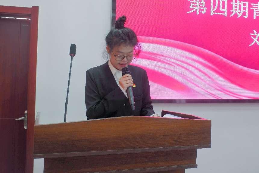 来自082406班的喻妍作为第五期青马工程新学员代表发言,喻妍呼吁学员们,在学习过程中,要保持求知欲,认真学习理论知识,积极参与实践活动,发挥团结协作精神,以身作则传播青马精神,助力校园文化建设。与此同时,来自0823403班的刘甜同学作为第四期青马工程培训班优秀学员代表发言,她深刻总结了自己在第四期青马工程培训班的所学所获,“理论课虽然有些深奥难懂,但这些课程让我深刻体会到什么叫累并快乐着,作为青年大学生,应坚定理想信念,提升自我,积极创新,为国家社会贡献力量。”