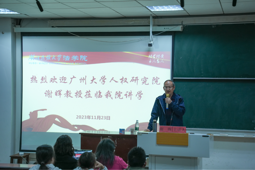 本网讯(记者 阮晨宇 周怡玥 朱宇/文 黄卓然/图)11月23日,“类案异判”的地方性反思专题讲座在我院9B301教室举行,由广州大学人权研究院谢晖教授主讲,法学院党总支书记张明波、院长汪燕、部分教师及百余位本科生和研究生参加了讲座。讲座由法学院冉艳辉教授主持。