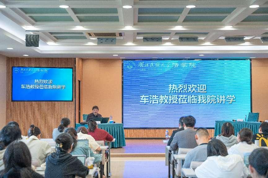 本网讯(记者 邬林峰 朱宇/文 黄卓然/图)4月12日,“刑法的语言”专题讲座在我校德智楼远程教学观摩室举行,由北京大学法学院副院长、犯罪问题研究中心主任、博士生导师、教育部“长江学者奖励计划”特聘教授、第九届“全国十大杰出青年法学家”、《中外法学》副主编车浩教授主讲,法学院多位教师及百余位本科生、研究生参加了讲座。讲座由法学院副院长蔡世鄂副教授主持,周详教授、蔡颖博士和黄继坤副教授参加与谈。