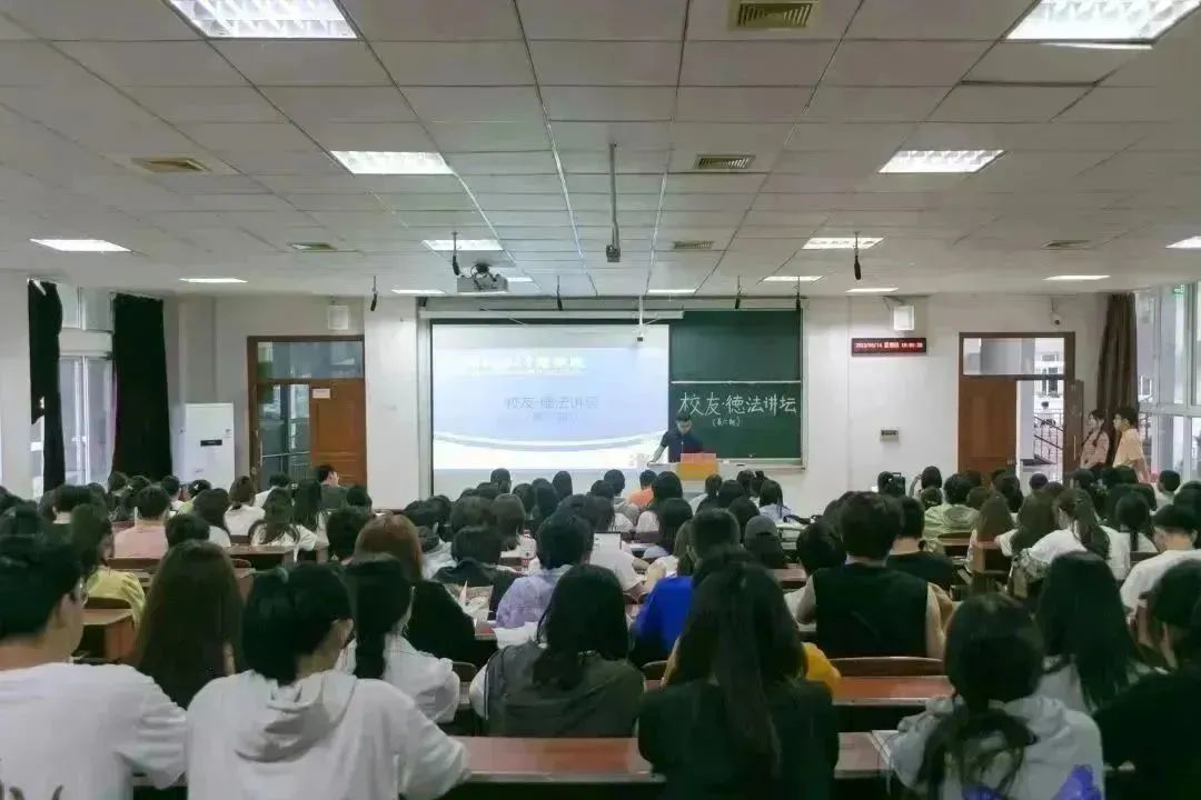 本网讯(记者 饶文婧/文 翁铭位/图)5月14日,我院于9B301教室邀请优秀校友向丹为同学们开展第六期校友·德法讲坛。恩施市人民检察院第五检察部主任向丹分享了近几年法学院检校合作资源开发与利用取得的巨大成就,与在场学生共同探讨了选择学习法律专业的初衷,引发了大家的深度思考。而后,向丹通过介绍部分实际处理过的刑事案件为同学们普及了案件处理流程,法律职业名称,内涵,特征等内容,并结合区域特性讲述了各行政机关的权利义务,进一步启发学生们思考法学专业职业发展的多样性和专业性。