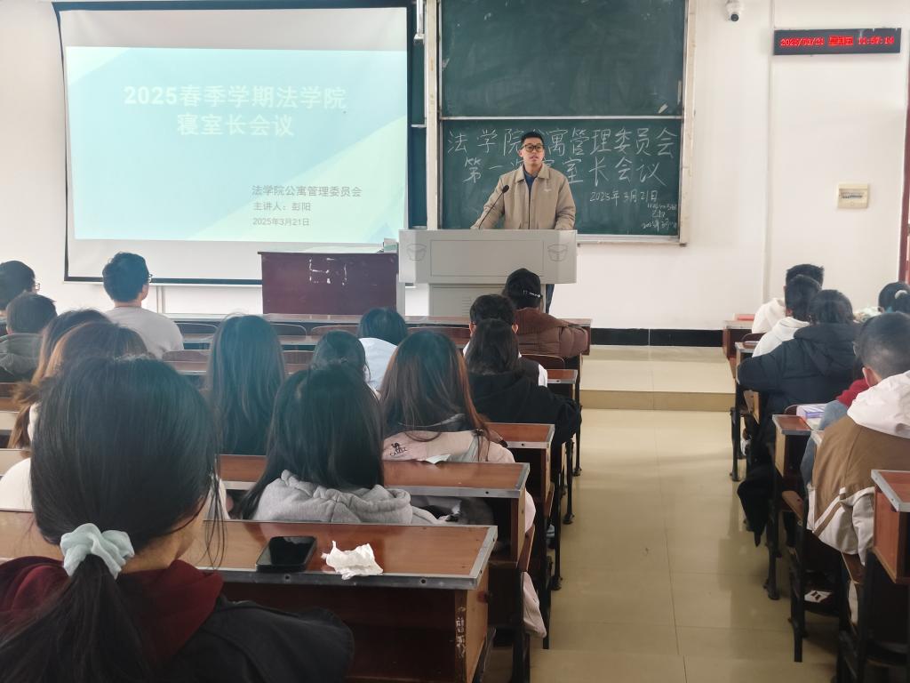 本网讯(记者 曹萍艳/文)3月21日,我院于德智楼9A410召开法学院寝室长会议,会议由彭阳老师担任主讲人,法学院大一、大二、大三全体寝室长参加此次会议。