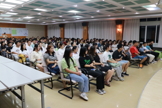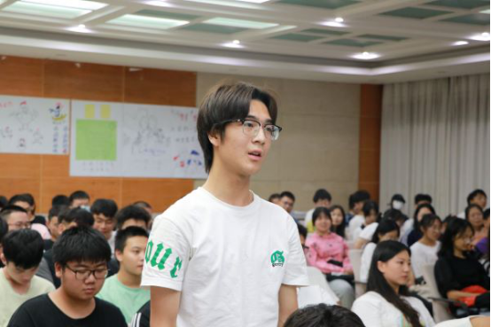 冉艳辉老师以鲍勃·迪伦的歌曲《答案在空中飘扬》为例,阐明了积极面对生活和主动经历的重要性,她认为每个人都应保持好奇心,在生活中多思多想。杨信老师通过讲述曾经面临选择的迷茫,提出人应该在不断否定中进步,希望在场学生任何时候都能坚定自己的选择。李妍辉老师通过自身经历论证了在人生岔路口拥有勇气的重要性,然后她以“非淡泊无以明志”一句作结,希望新生对法学学习抱有热情。黄继坤老师结合其丰富的工作经历,着重强调了实践经历对法学学习的重要性,努力做到知行合一。最后,蔡世鄂老师从自身的年少目标开始,讲述自己坚定选择法学的原因,并希望新生们可以在大学四年的学习中不断发展自己、完善自己。