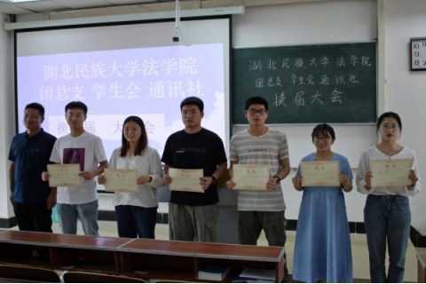 大会伊始,胡海剑老师、成润老师依次宣读365电子娱乐官方网站法学院第三届团总支、学生会和通讯社换届名单,三位老师分别为18级学生干部、19级学生干部颁发聘书。