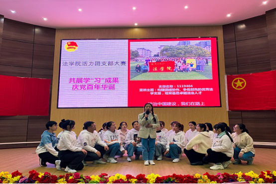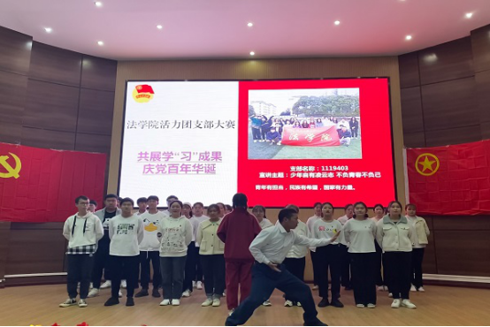本网讯(见习记者 许帅伟 苏浩楠 喻晓凡/ 刘皇 李经玺/图)万里河山风雨急,千年英杰才情萃。为庆祝中国共产党百年华诞,共展学“习”成果,42日,我院于图书馆学术报告厅举办法学院活力团支部大赛。19级、20级共七个团支部参与此次比赛,文学与传媒学院团总支书记谭芸、信息与工程学院团总支书记谭俊妮、我院团总支书记阙嘉苗受邀担任此次比赛评委,党总支副书记许宗友受邀出席大赛。