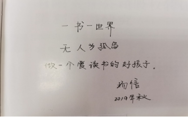 本网讯(记者 张茜 罗丹) 我院大力倡导学生“好读书、读好书、读书好”的理念,自2019年起我院向校友、老师以及毕生生发起了“我为新生送本书”活动,让每位新生在入学之际都能领到一本附有寄语的“好书”。待学生阅毕留下感言后,再将其转给下一届新生。通过书籍的不断漂流,让每一本好书与大家共享,让知识不断的传递,一书一世界,无人为孤岛,我们同在法学院相聚。