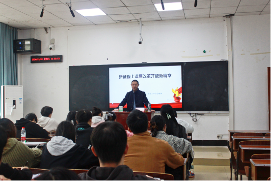 11月10日,美术与设计学院党总支副书记向贤海以“学习领会党的二十届三中全会精神-—以进一步全面深化改革开辟中国式现代化广阔前景”为主题讲授了一堂精彩党课。他鼓励青年学生要坚定政治信念、提高政治站位、树立远大理想、培养担当精神、刻苦学习知识、积极参加实践、服务社会大众、弘扬传统文化,帮助各发展对象对党的二十届三中全会精神有更深入的理解和认识。