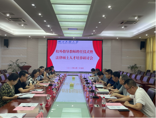本网讯 6月25日下午,湖北民族大学法学院法律硕士校外指导教师聘任仪式暨法律硕士人才培养研讨会在学校行政楼3号会议室举行。来自恩施州人大常委会、州检察院、宣恩县检察院及律师事务所的校外导师代表受邀参加会议,365电子娱乐官方网站党委常委、纪委书记、监察专员张宏磊,校党委委员、研究生处处长谭德宇,法学院党政领导班子,部分校内导师代表出席会议。