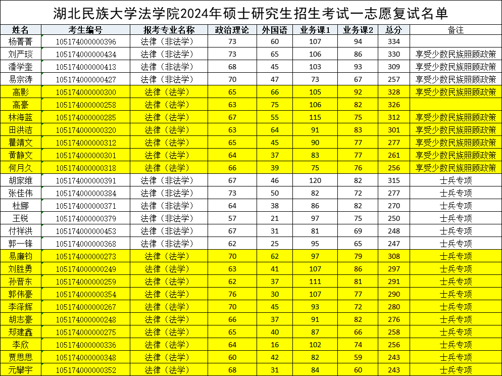 365电子娱乐官方网站法学院2024年硕士研究生招生考试一志愿复试名单