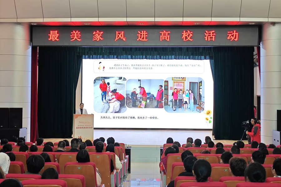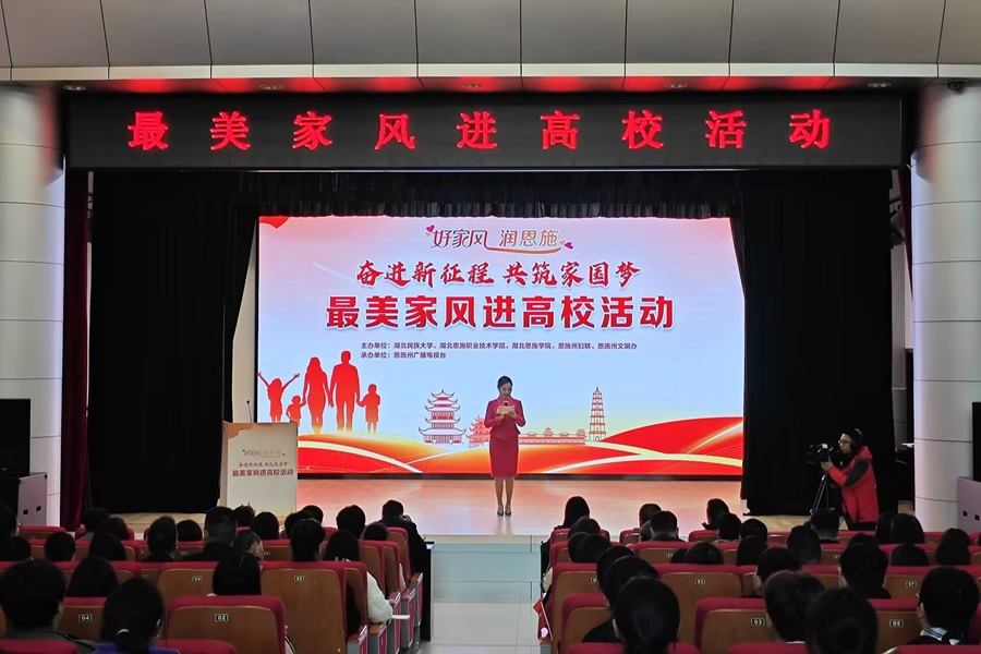 恩施州妇联党组书记、主席刘俐萍寄语我校学生争做家风的自觉传承者、家国情怀的坚定弘扬者、时代新风的忠实践行者,珍惜来之不易的学习环境和机会,以中华优秀传统文化为“营养库”,坚持修身齐家、知行合一、勤奋好学、乐于助人,为涵养社会文明新风尚贡献青春和力量。