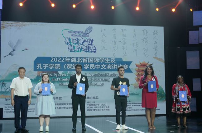 8月12日下午,由湖北省教育国际交流协会、湖北省人民对外友好协会主办的“2022年湖北省国际学生及孔子学院(课堂)学员中文演讲比赛(决赛)”在湖北广播电视台举行。我校参赛的两名国际学生表现优异,获得三等奖、最佳才艺奖、优秀奖,国际教育学院陈春红老师获得“优秀指导教师”称号。
