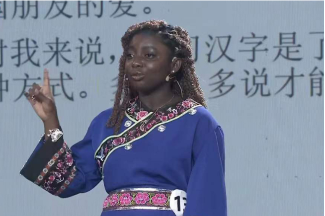 我校赞比亚籍留学生华艺以《美丽湖北,魅力恩施》为题介绍了恩施的风土人情与日常生活。在她眼中,土家族文化绚丽多姿,极具魅力。她大方地向现场评委和观众展示了她身穿的土家族服饰,并跳起了土家摆手舞。华艺获得优秀奖。