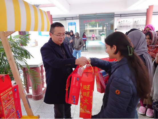 国际教育学院副院长李元胜为留学生发放春节礼品