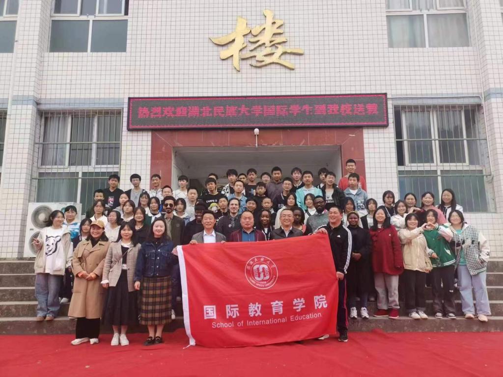 2023年4月27日下午,国际交流合作处党支部组织国际学生前往利川市凉雾乡马前中学开展送教下乡志愿服务活动,为山区孩子送去生动活泼的英语交流活动。