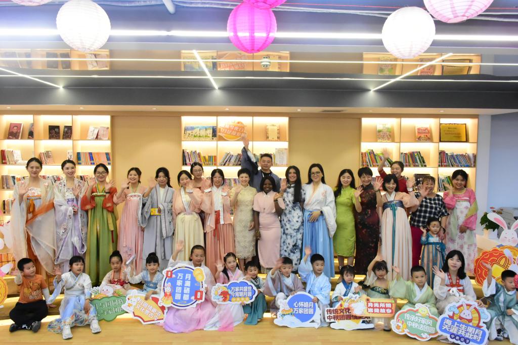 当晚,参加活动的人员均身着汉服、旗袍等中国传统服装,活动现场国风范十足。舞阳坝街道新时代文明实践所邀请在场的居民和外籍师生共同参与国学礼仪、诗词鉴赏、西兰卡普特色文化、猜灯谜等多个活动环节,并提供了美味的月饼和应季瓜果供大家品尝,让大家过了一个欢乐祥和的中秋节。