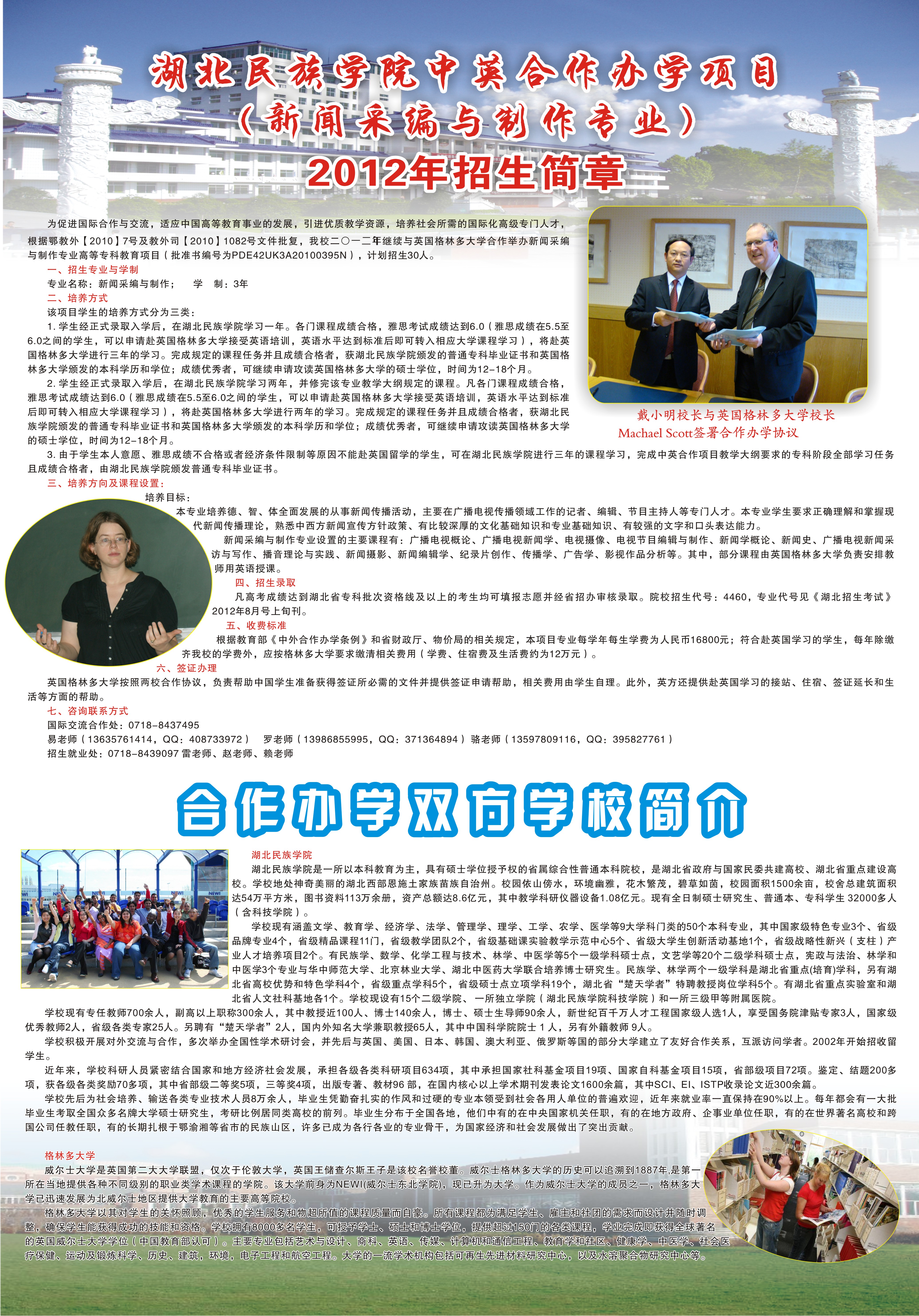 - > 湖北民族学院中外合作办学项目招生 2011-03-28 15:56:26