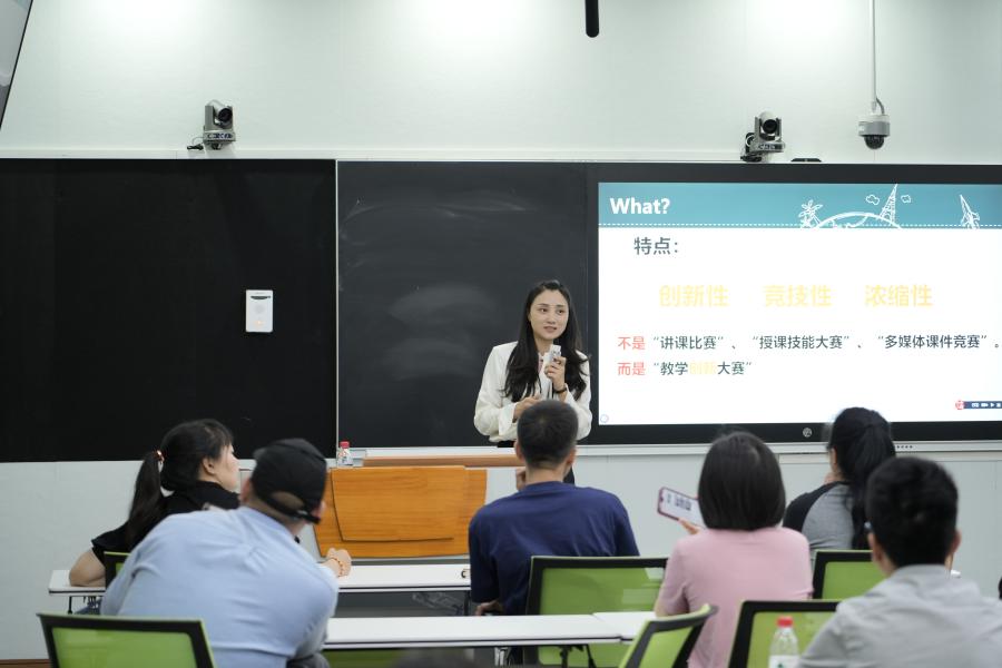 洪佳丽从“What”“Why”“How”三个层面,就高校教师教学创新大赛的重要性、参加教师教学创新大赛需要从“被动”转为“主动”,以及“团队建设、日积月累、持续学习、准备工作”等参赛要领进行了分享。