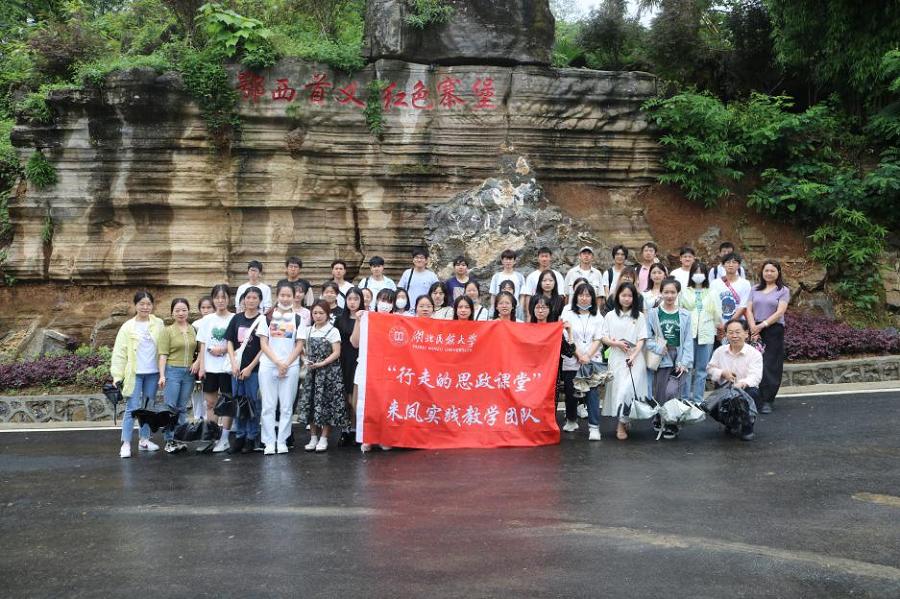 6月12日,“行走的思政课堂——读书明星走进红色文化基地”实践教学活动暨马克思主义学院思想政治理论课教学部党支部主题党日活动举行。此次实践教学活动以“走进红色文化基地,师生共续红色血脉”为主题,本学期在“品读经典读书明星”活动中评选出的读书明星参与,马克思主义学院《毛泽东思想和中国特色社会主义理论体系概论》课教研部和思想政治理论课教学部党支部教师带队分别前往鹤峰、来凤、咸丰和恩施进行实践教学。