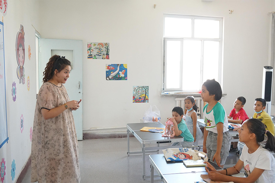 “大家都写对了我教的中国字,而且我发现很多一年级的小朋友也全对,这让我很欣慰,也让我成长了很多。我希望明年还有机会参加这样的实践!”团队成员马昕所讲授的是趣味中国字,她说因为第一次授课,十分紧张,提前一个月便认真备课,做好了精美的PPT。为了增加趣味性,她还准备了绕口令、猜字谜等小游戏激发小朋友的学习热情。队员依克巴利·伊布拉音、邓玉玲等也采用答对题发小糖果,与小朋友们一起做水果捞等方法活跃课堂氛围。