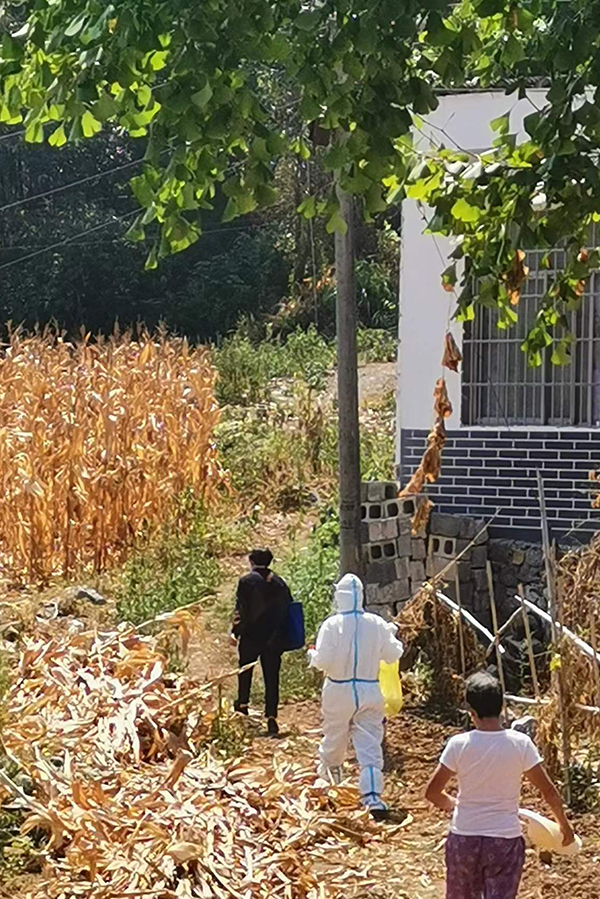 民大志愿者在龙凤镇吉心村丝梨湾组进行核酸采样